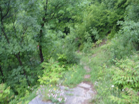 So in the morning it’s nice and sunny but a bit damp and wet everywhere. So we eat what food is left, clean up the site and head back down the mtn to catch a train to the village or city of Viden we were going to meet the others at that day. Well I could see the big hill/rock that people rock climb on it and it was pretty impressive looking but don’t think I could climb it! As we headed down the steep trail I realized that we were actually walking on the side of a mtn and it was a steep drop down in a few places! Plus some were pushing their bikes thru the bushes and mud by the trail!